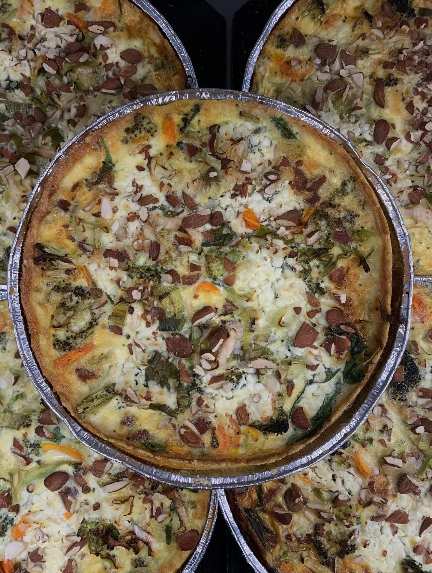Vegetarisk tærte – økologisk grøntsagstærte med mandler og ost.